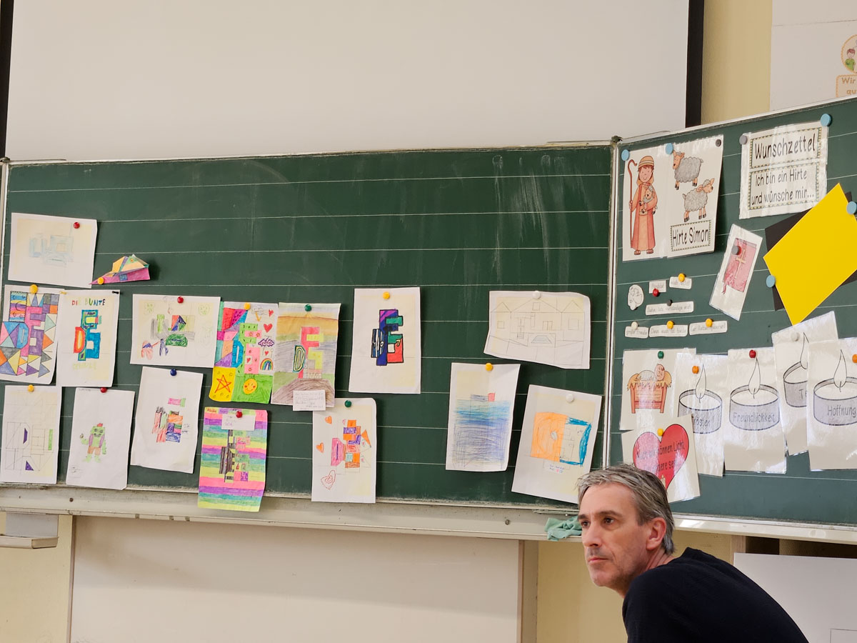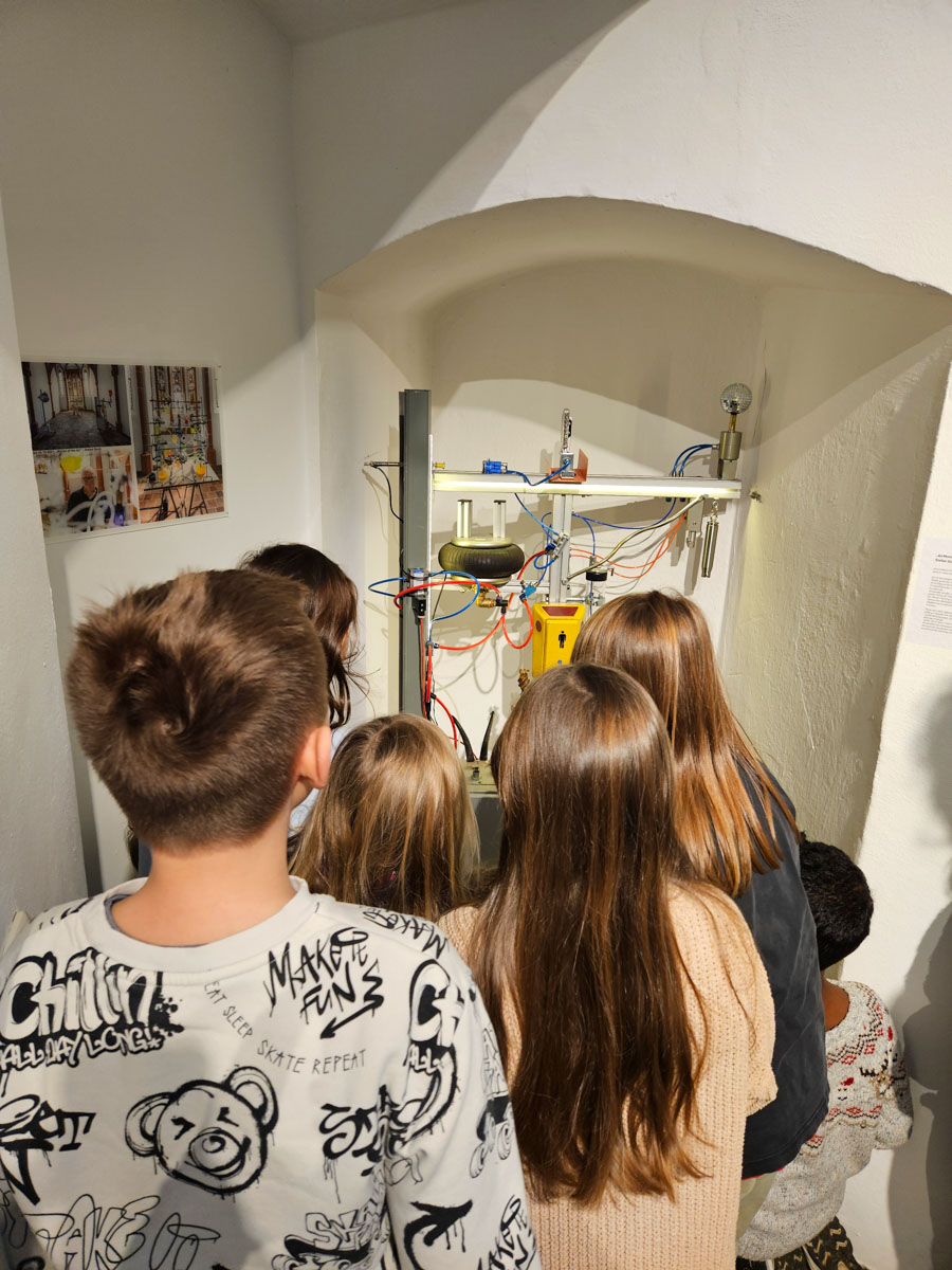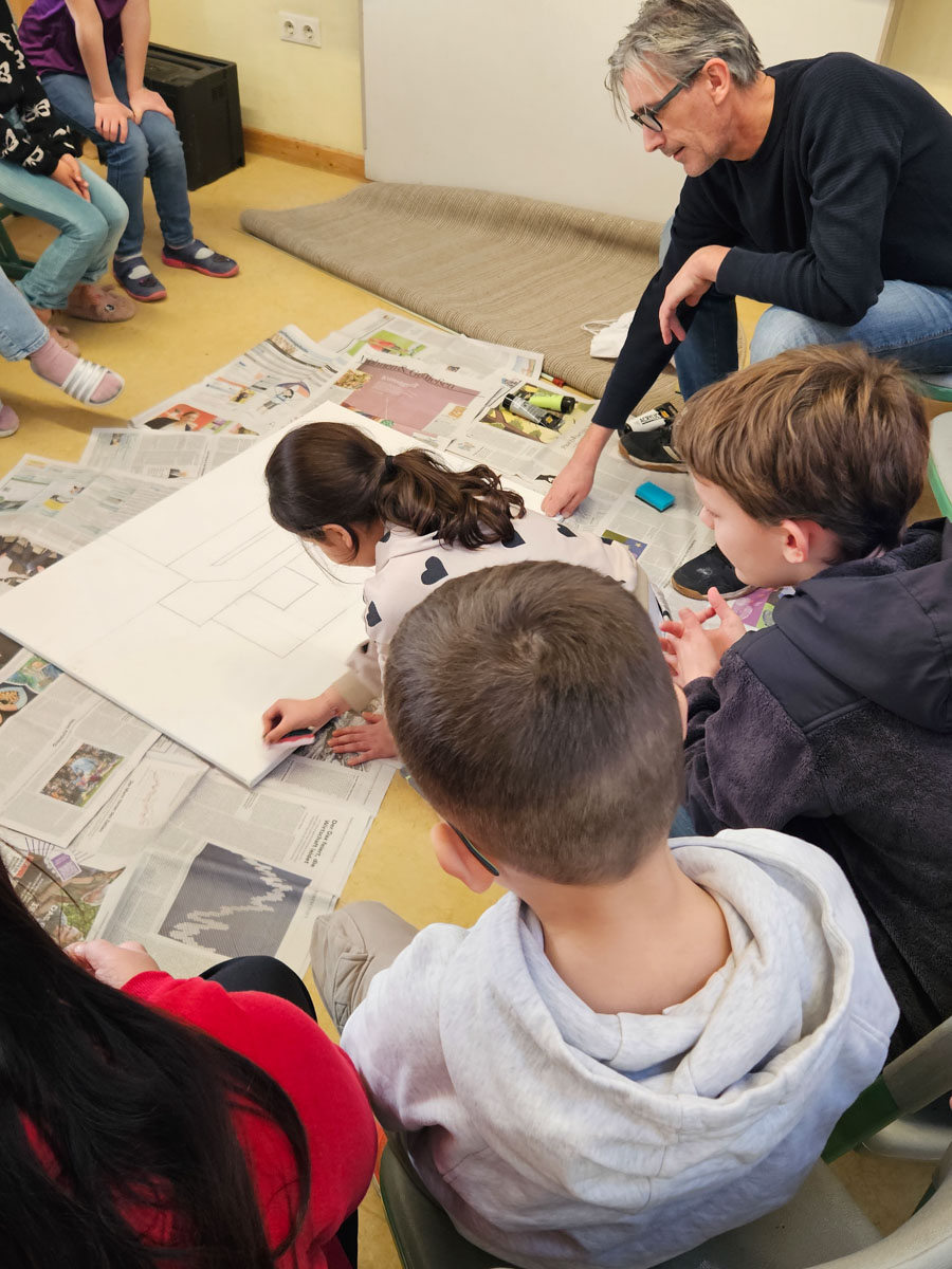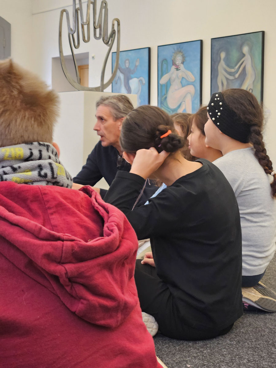 Die Kinder lernen den Künstler Marcus Trepesch vom A.K.T. – Kunstverein kennen.